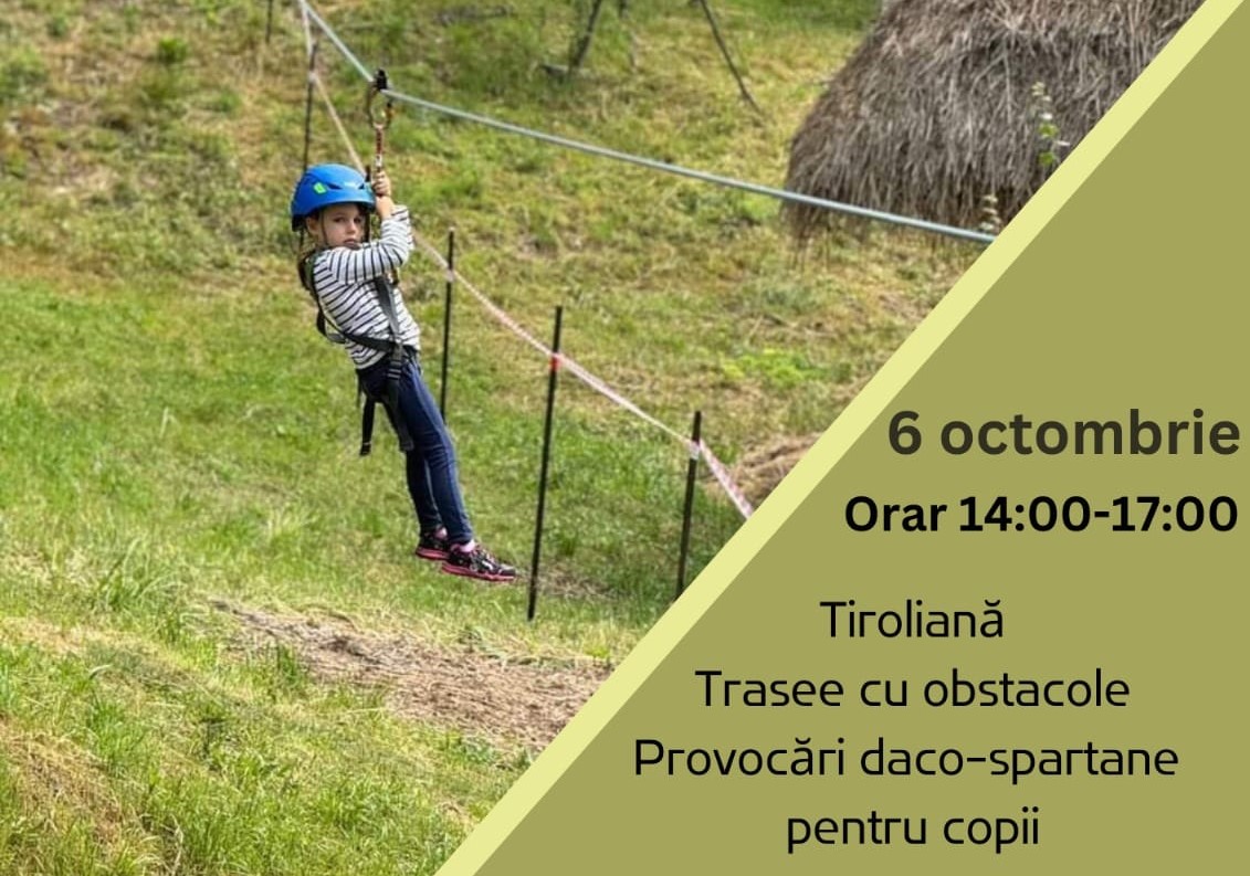 ”Duminică, 6 octombrie, vă așteptăm să ne distrăm împreună în Satul de pe Dealul Florilor. Intrarea se va face prin achiziționarea biletului de vizitare a muzeului (3 lei/ copil și 6 lei/ adult), iar pentru a porni în aventură cu tiroliana, pentru a parcurge traseele cu obstacole și pentru a face față provocărilor daco-spartane, donația recomandată este de minim 7 lei, la Asociația Energia Mișcării. Program: duminică, 6 octombrie, orele 14:00-17:00”, scriu reprezentanții Satului de pe Deal pe pagina de Facebook.