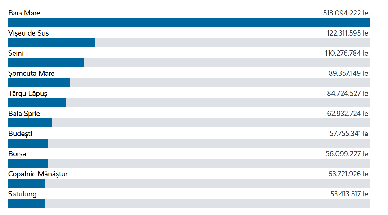 Primul loc îl ocupă, oarecum previzibil, Baia Mare. Pe podium, se mai află Vișeu de Sus și Seini, urmate la mică distanță de Șomcuta Mare.
