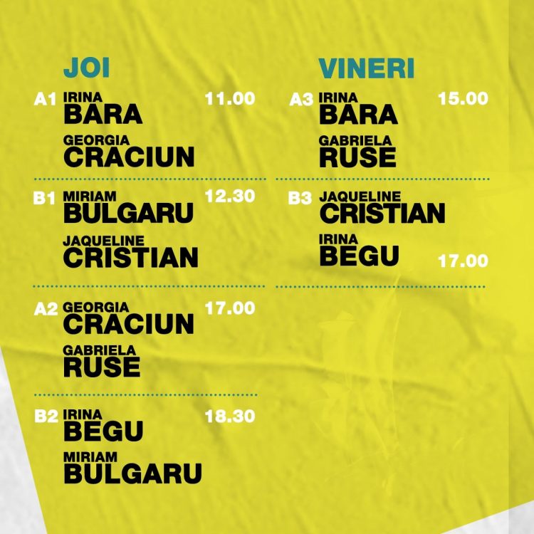 Turneul a început astăzi, 2 iulie, la ora 11.00, cu Irina Bara și Georgia Crăciun în teren.