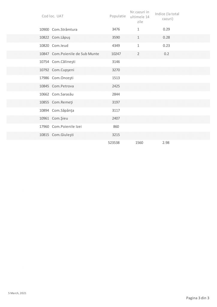 Județul Maramureș a ieșit vineri, 5 martie, din zona roșie, indicele scâzând acum la 2.98.