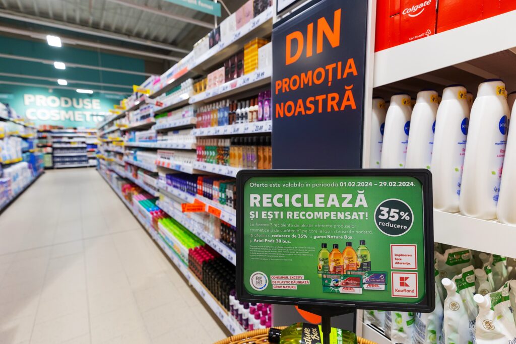 În linie cu angajamentul companiei față de protejarea mediului, clienții Kaufland sunt încurajați să recicleze folosind sistemele de colectare selectivă din noul magazin: