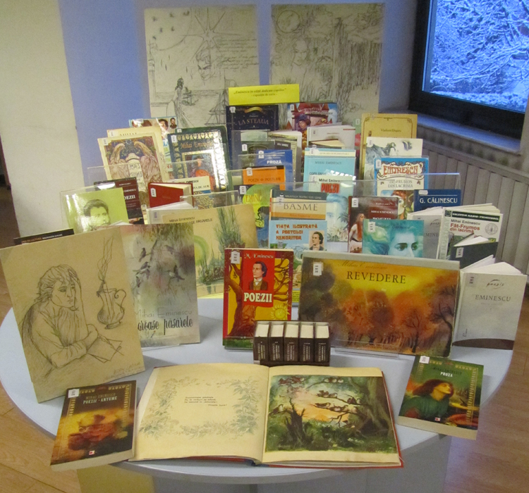 Prima expoziție intitulată „Eminescu în ediții dedicate copiilor” se adresează copiilor și tinerilor și reunește volume de poezie, proză, publicistică, corespondență, istorie și critică literară. Din cadrul expoziției, cele mai solicitate titluri sunt: „Făt Frumos din lacrimă” „Somnoroase păsărele” „Revedere”, „Luceafărul”, „Scrisoarea III”.