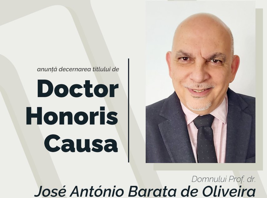 ”Avem deosebita onoare de a vă invita să participați la ceremonia solemnă de decernare a titlului de „Doctor Honoris Causa” domnului Prof.univ.dr. Jose Antonio Barata de Oliveira, Universitatea NOVA din Lisabona, Portugalia, personalitate științifică remarcabilă pe plan internațional în domeniul roboticii și producției integrate.