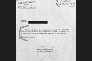 La cererea cititorilor ZiarMaramures.ro, am decis publicarea in copie electronica a actelor invocate in materialul referitor la Romaltyn Mining. Societatea cu capital privat rusesc intentioneaza prelucrarea, pe o perioada NEDETERMINATA, a materiilor prime cu continut de aur si argint. Acest fapt reiese dintr-un raport oficial intocmit de conducerea societatii, in toamna anului 2007.