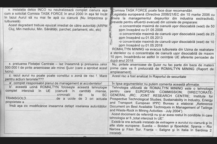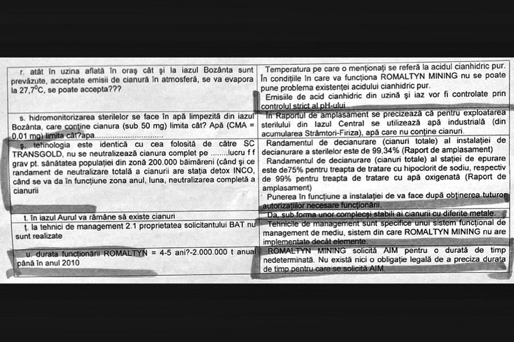 Actul, semnat de directorul executiv Benoniu Muntean si purtand stampila unitatii, arata ca solicitarea privind eliberarea Autorizatiei Integrate de Mediu pentru Romaltyn Mining nu contine nicio precizare referitoare la perioada de functionare a societatii. Oficialii companiei argumenteaza ca legea nu prevede nicio obligatie in acest sens.