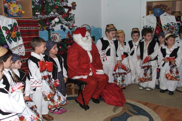 Linistea s-a terminat in momentul in care micutii si-au primit darurile. Mosul a scapat ieftin in acest an: nici unul dintre copii nu l-a tras de barba la momentul alocat pozelor.