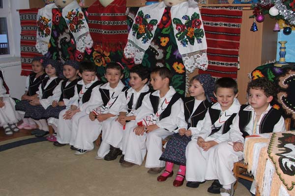 Pitici din grupa mare a Gradinitei cu program prelungit nr.25 din Baia Mare, au pregatit ieri un spectacol de colinde, urari si dansuri traditionale maramuresene. Grupa mare, denumita nu degeaba „Raza de soare” a reusit sa incalzeasca sufletele parintilor si bunicilor prezenti. Programul serbarii a fost unul impresionant, mai ales daca ne gandim ca protagonistii au abia cinci ani. Cele doua educatoare, Georgeta Galca si Crina Cris, cu sprijinul celor doua ingrijitoare ale grupei, au reusit in scurt timp sa ii invete pe copii colinde si dansuri populare care ar fi dat bataie de cap inclusiv unor adulti. Dar copiii, imbracati evident in port popular, au facut fata situatiei si si-au jucat rolurile de „gazdoi” si „colindatori”.