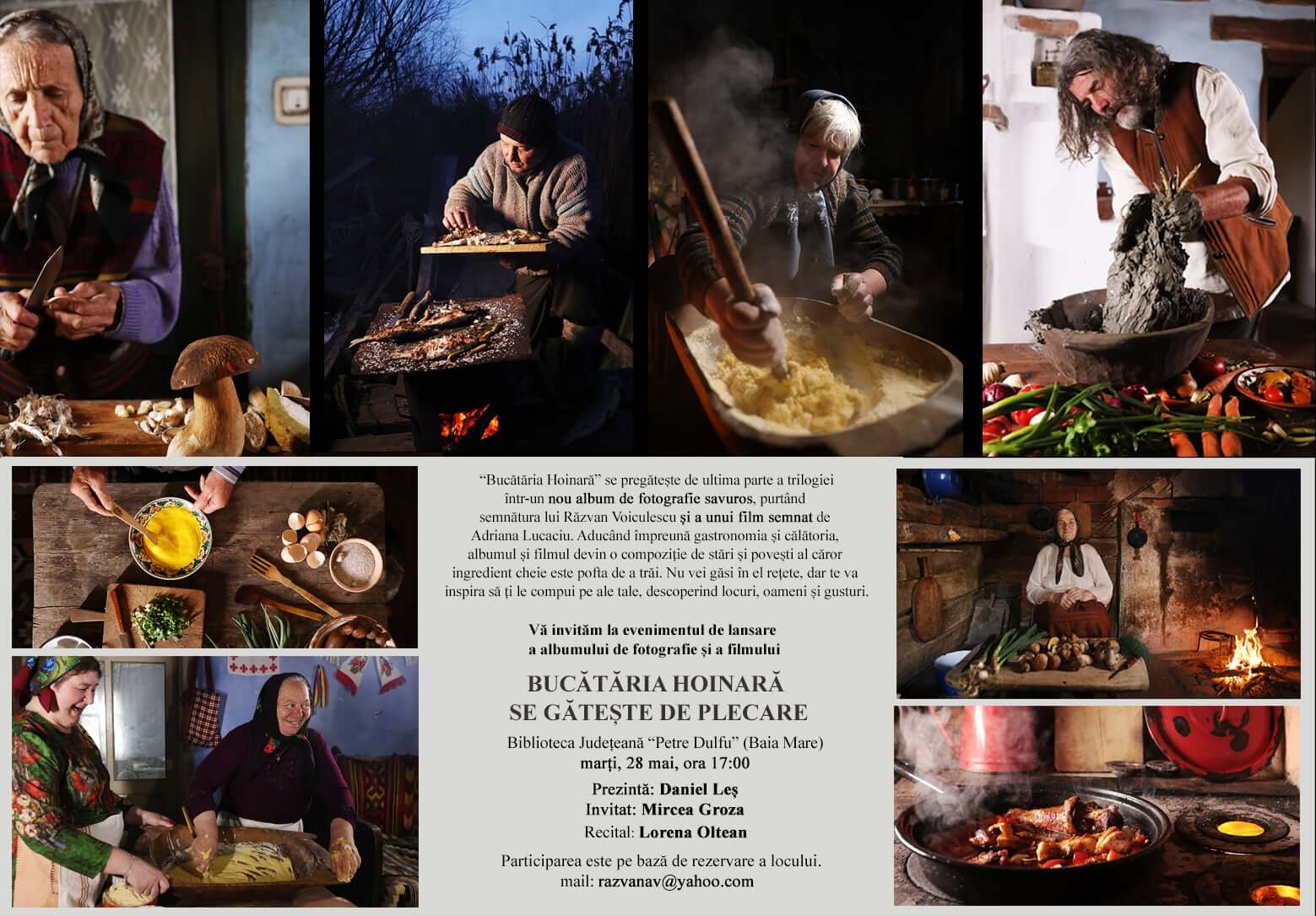 ”Aducând împreună gastronomia și călătoria, albumul și filmul devin o compoziție de stări și povești al căror ingredient cheie este pofta de a trăi. Nu vei găsi în el rețete, dar te va inspira să ți le compui pe ale tale, descoperind locuri, oameni și gusturi”, se arată în prezentarea evenimentului. Prezintă Daniel Leș. Invitat: Mircea Groza. Recital: Lorena Oltean. Participarea este pe bază de rezervare a locului (mail: [email protected]).