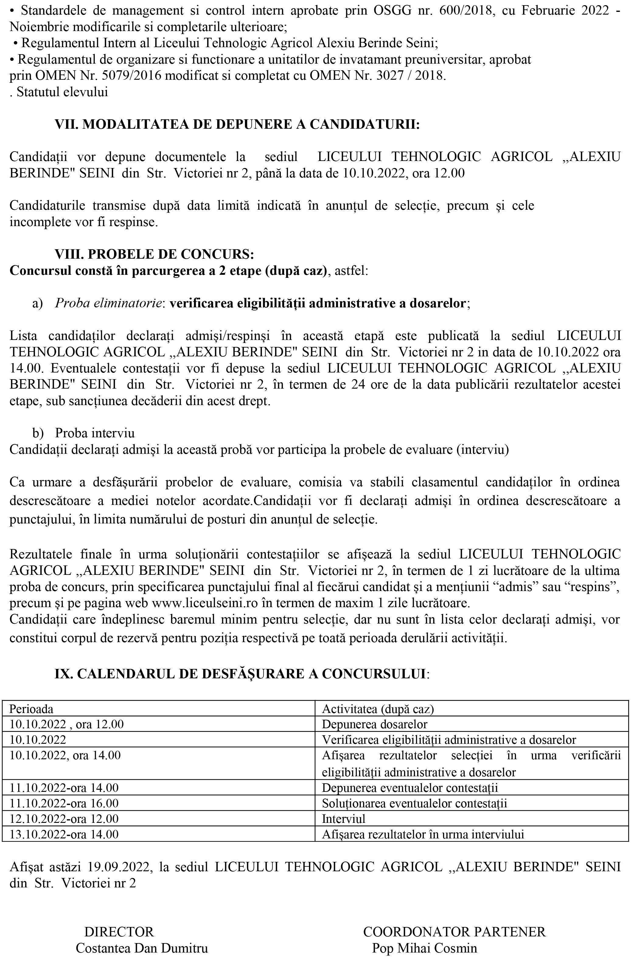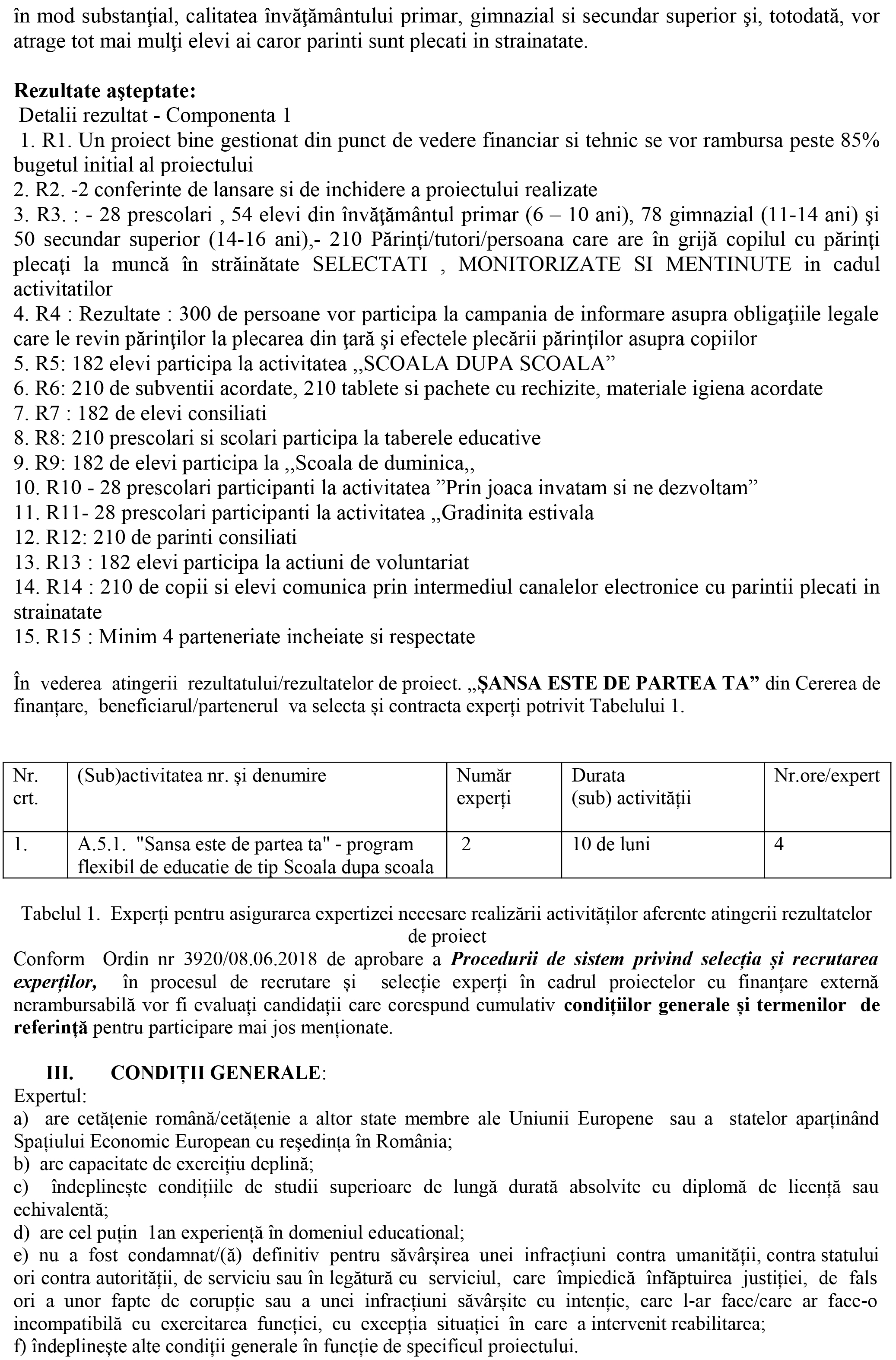 Detalii, în ANUNȚUL DE SELECȚIE – format PDF.