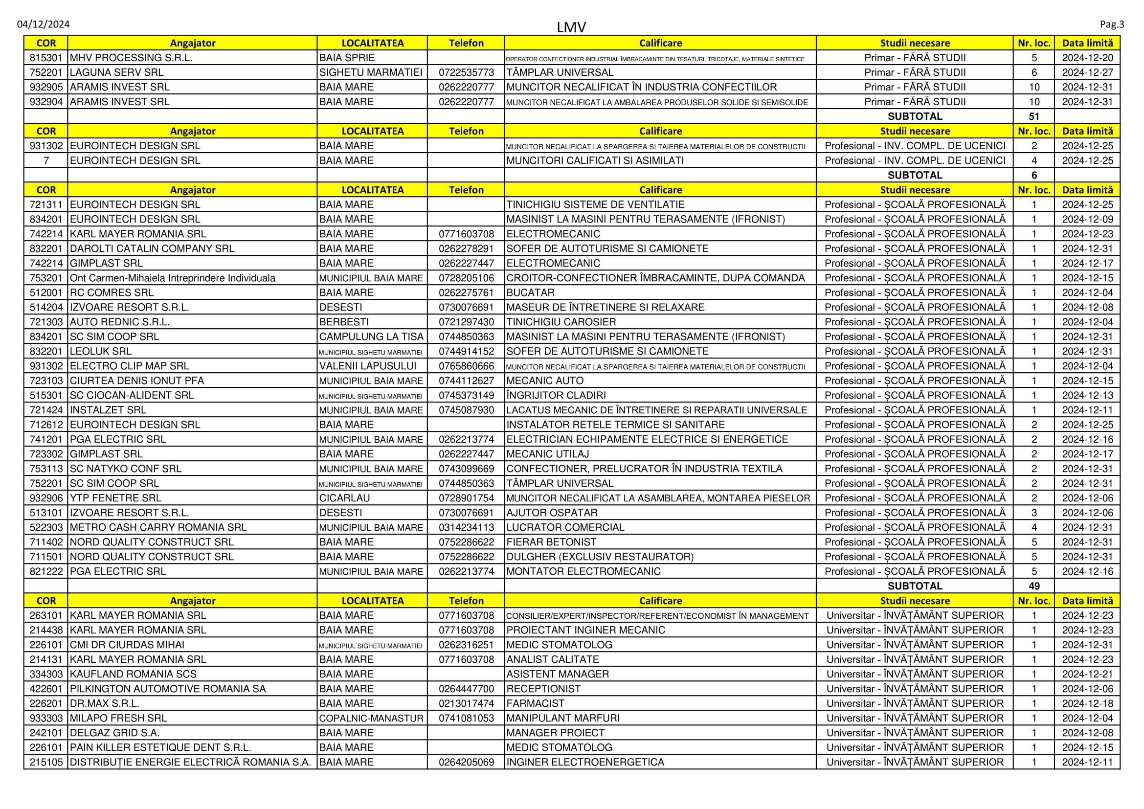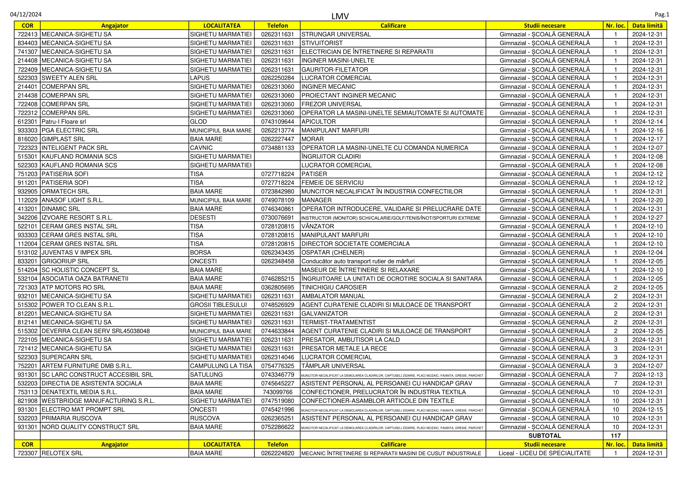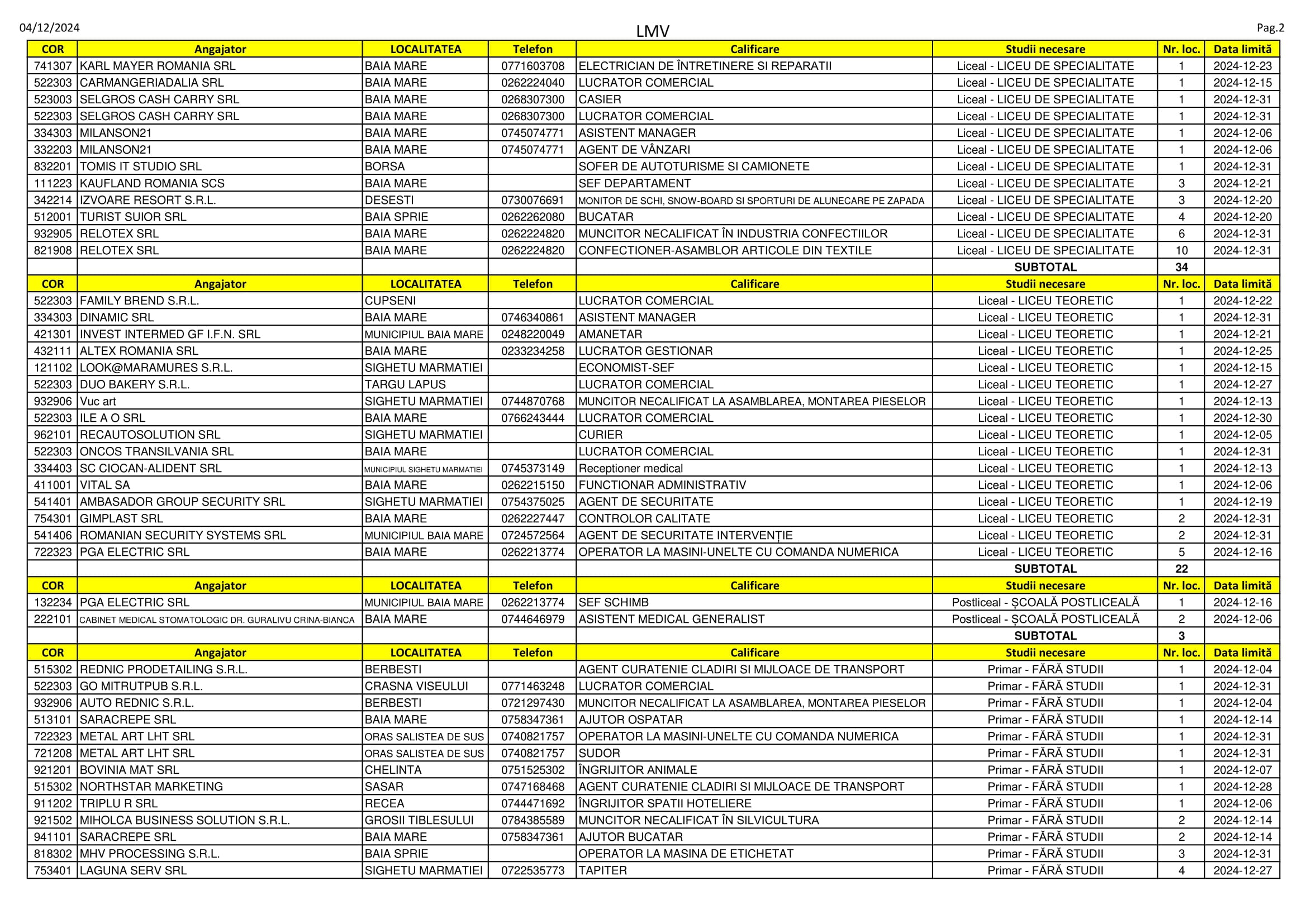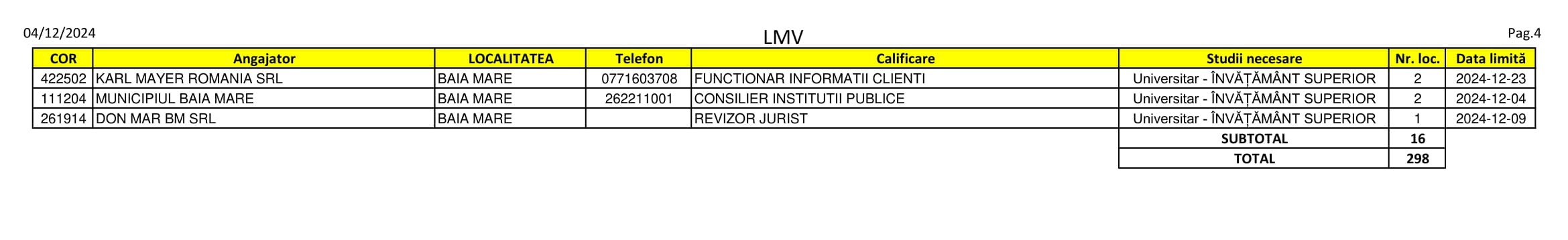 Aproape 300 de locuri de muncă sunt disponibile în aceste zile pe listele AJOFM Maramureș. Se caută de la patiseri și zugravi până la economiști și ingineri. Listele le puteți consulta mai jos.