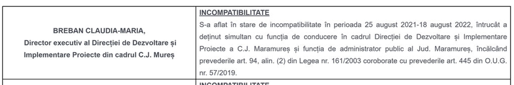 Pentru că Ionel Bogdan nu a luat nicio măsură, a fost sesizată Agenția Națională de Integritate, care a cerut atât Consiliului Județean Maramureș, cât și redacției ZiarMM.ro mai multe date referitoare la situația Claudiei Breban. De atunci, au trecut doi ani (enorm de mult pentru a constata ceea ce era extrem de evident pentru oricine cintește două paragrafe din lege) și iată că ANI a emis un document oficial care atestă fără echivoc faptul că administratorul public al județului Maramureș s-a aflat, timp de un an, în incompatibilitate.