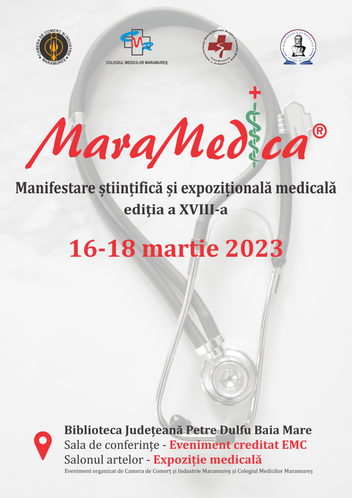 Camera de Comerț și Industrie Maramureș și Colegiul Medicilor Maramureș au început pregătirile pentru cea de-a XVIII-a ediție a manifestării științifice și expoziționale ”MaraMedica”. Expoziția de produse și echipamente pentru medicină și tehnică dentară MaraMedica va avea loc în perioada 16-18 martie 2023 la Salonul Artelor din cadrul Bibliotecii Județene ”Petre Dulfu” Baia Mare, în vreme ce componenta științifică a manifestării se va desfășura în Sala de Conferințe a bibliotecii.