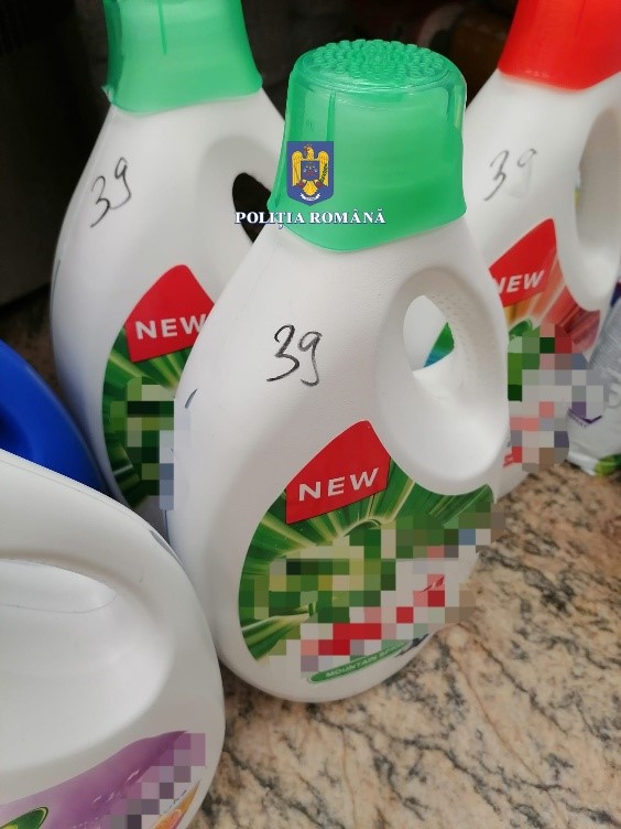 Polițiștii au indisponibilizat în vederea efectuării de cercetări 215 produse susceptibile a fi contrafăcute, respectiv obiecte de îmbrăcăminte, genți de damă, seturi de jucării și detergenți lichizi, care poartă însemnele unor mărci înregistrate, în valoare de aproximativ 30.000 lei.