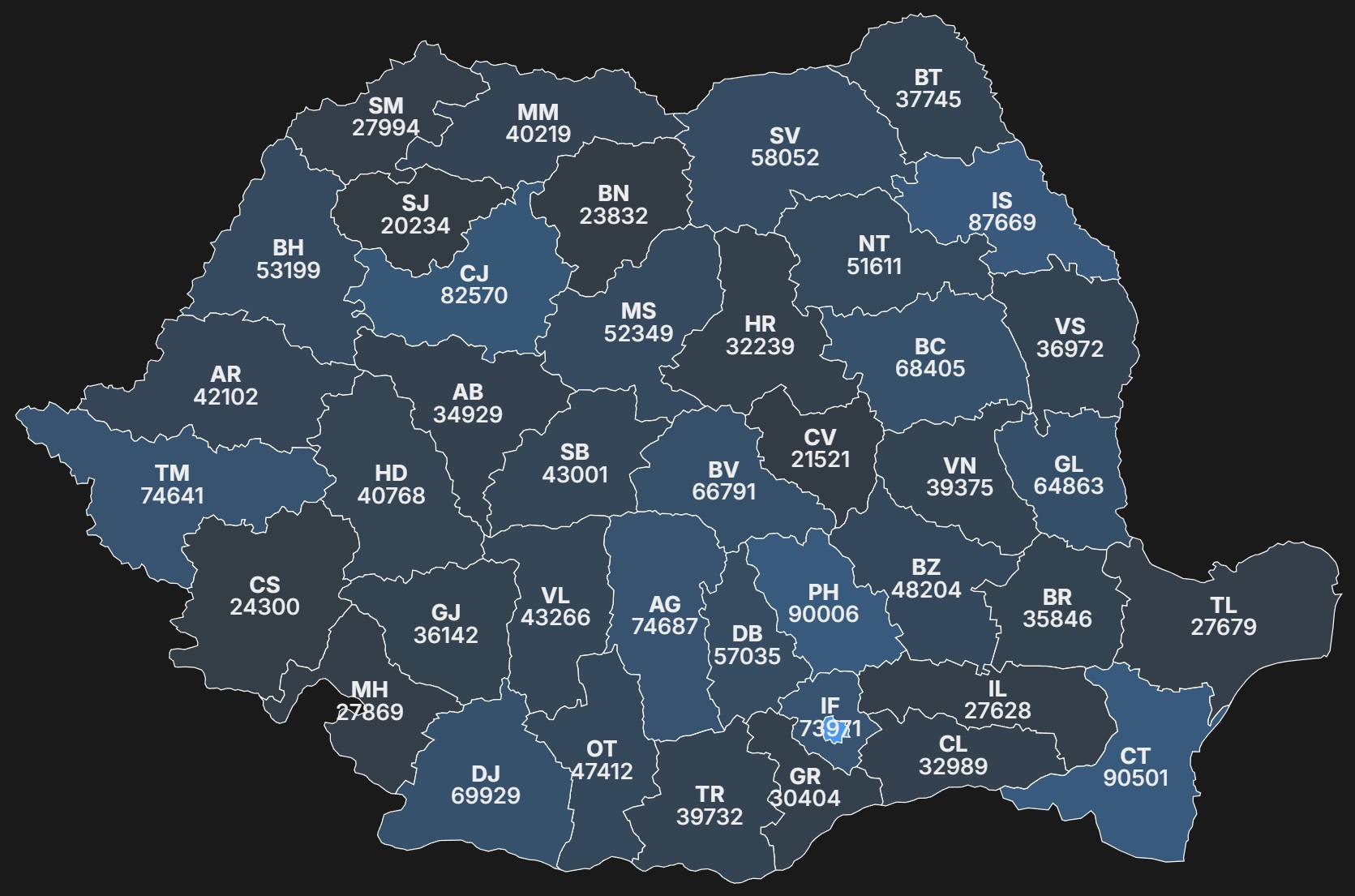 Județul Maramureș, rămâne sub 50% și mult sub media națională.
