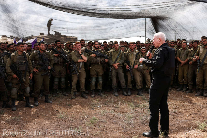 Ministrul israelian al apărării, Yoav Gallant, le-a spus joi soldaţilor din trupele de infanterie comasate la frontiera cu Fâşia Gaza că vor vedea în curând „din interior” această enclavă palestiniană, mesaj care sugerează că se apropie momentul în care armata israeliană va lansa ofensiva terestră asupra enclavei controlate de mişcarea islamistă Hamas ce a atacat prin surprindere Israelul pe 7 octombrie, relatează agenţiile Reuters şi DPA, informează AGERPRES.