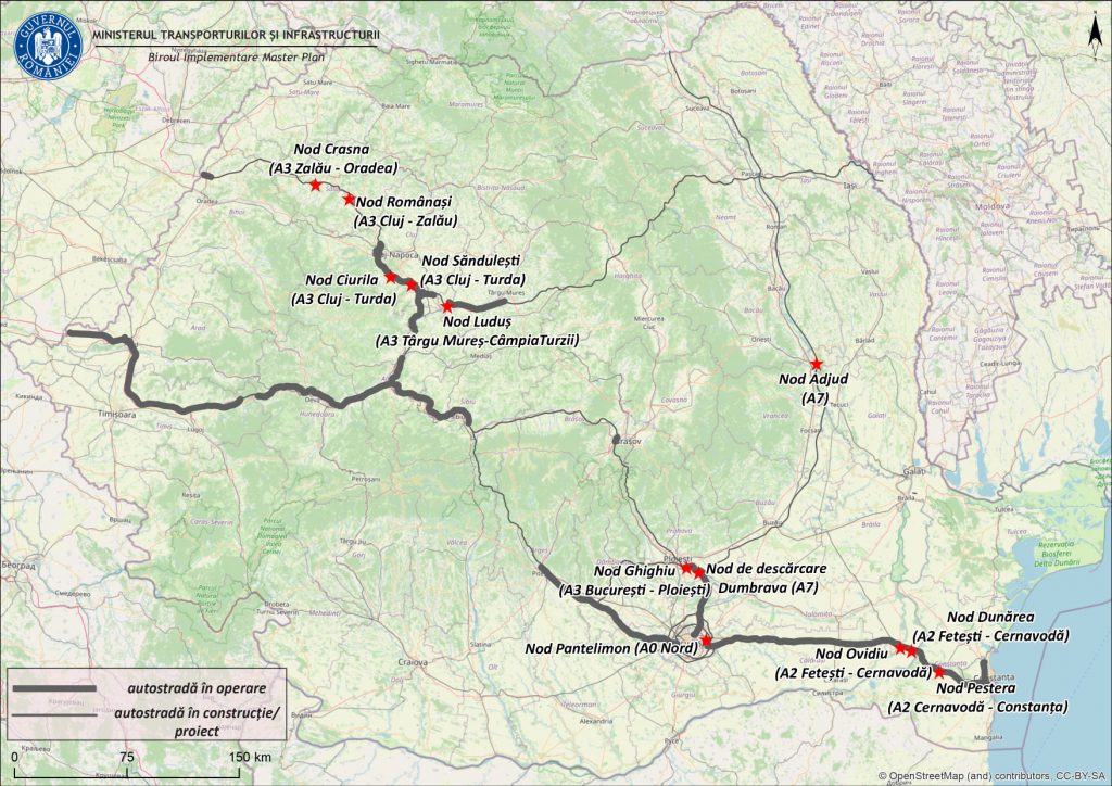 Ministrul Transporturilor a menţionat Nod Pantelimon, pe A0 Nord; Nod Ovidiu, pe A2 Feteşti – Cernavodă; Nod Dunărea, pe A2 Feteşti – Cernavodă; Nod Peştera, pe A2 Cernavodă – Constanţa; Nod Ghighiu, pe A3 Bucureşti – Ploieşti; Nod Ciurila, pe A3 Cluj-Turda. De asemenea, a făcut referire la Nod Românaşi, pe A3 Cluj-Zalău; Nod Luduş, pe A3 Tg.Mureş-Câmpia Turzii; Nod la Sănduleşti, pe A3 Cluj-Turda; Nod la Crasna, pe A3 Zalău-Oradea; Nod de descărcare pe A7, în zona localităţii Dumbrava, după conexiunea autostrăzilor A7 şi A3 şi Nod la Adjud Est, pe A7 Focşani-Bacău.