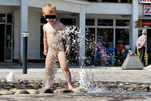 De cateva zile, asa cum semnalam si intr-un material anterior, fantana arteziana de la RFN are o alta destinatie decat cea prevazuta initial. E folosita pe post de dus si baie publica de copiii care merg in parc sa se joace. Pe asa calduri, nici nu e de mirare. Mai ales ca Strandul Municipal nu da semne ca se va deschide anul acesta.