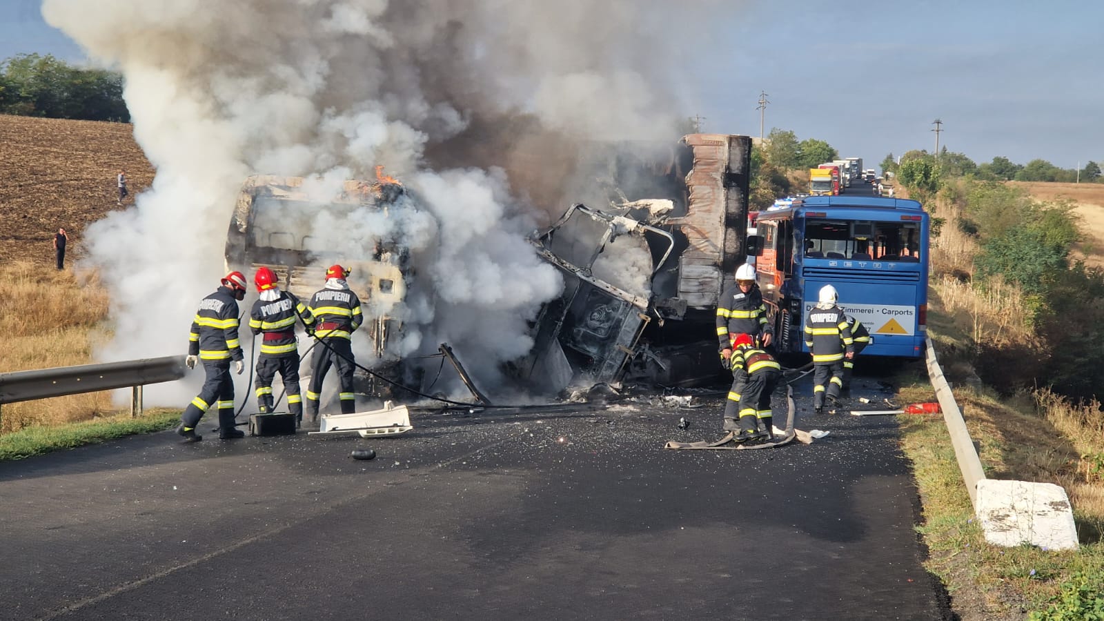 Urmare a evenimentului produs, au ars 1 autobuz și 1 autotren însă incendiul a fost lichidat.