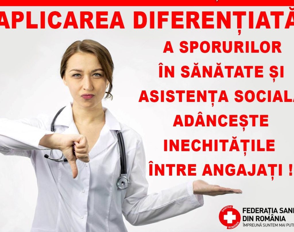 Atragem încă odată atenția guvernanților că situațiile de mai sus reprezintă o inechitate și o discriminare gravă a categoriilor de salariați. Practic, se încalcă un principiu fundamental al dreptului muncii, cel al egalității de tratament între salariații care desfășoară același tip de muncă, în aceleași condiții”, arată SANITAS.