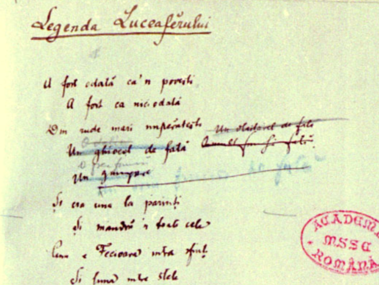 1889: Pleca înspre stele Mihai Eminescu, poate cea mai cunoscută personalitate a literaturii române. I s-a spus ”Luceafărul poeziei românești” și ”Poetul nepereche”. A lăsat în urmă creații remarcabile. În imagine, o filă de manuscris a ”Luceafărului”, poem pe care Eminescu l-a finisat de-a lungul mai multor ani până la publicarea sa, în 1883.