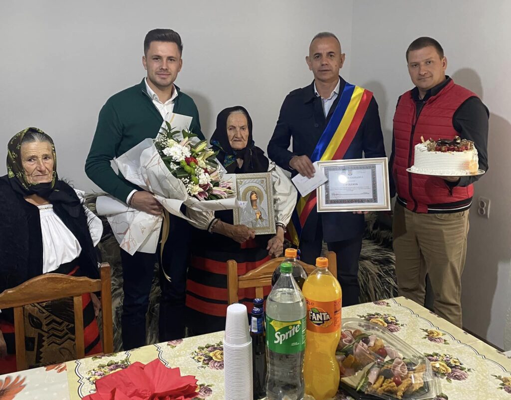 ”Astăzi, 17.10.2023, împreună cu colegii mei Ioan Bologa și Vasile Roman, am avut onoarea de a participa la aniversarea venerabilei vârste de 100 de ani împreună cu Matusa Ileana lu’ Feru (Pop Ileana), unde, i-am oferit diploma de excelență pentru un secol de viață și mici atenții.
