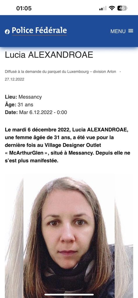 „We have been very saddened by the news that my youngest sister, Lucia Alexandroae had disappeared since the 9th of December. She lived in Arlon, Belgium and worked for Eurostat – Sogeti, Luxembourg. Please share and if you have any information, do not hesitate to contact us. The police have started their investigations so please pray for the police in Belgium and Luxembourg to work together and efficiently in finding Lucia”, spune sora Luciei, Aurica