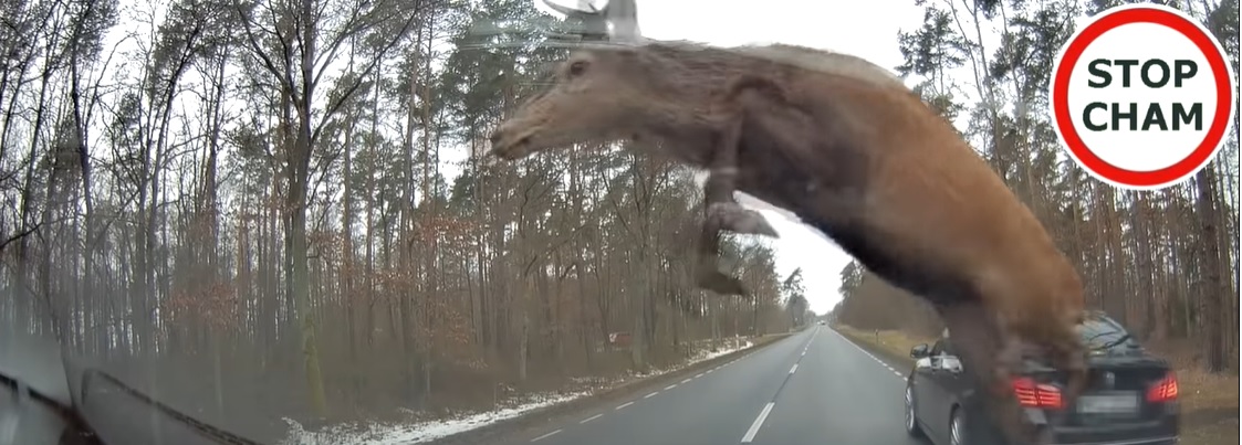 Protagonist a fost un sofer al unei masini BMW Seria 5 care circula pe un drum imprejmuit de padure. Din filmuletul facut de camera de bord a vehiculului din spate se poate vedea insa cum, la un moment dat, BMW-ul franeaza la aparitia pe sosea a unor animale, mai exact o turma de cerbi care au incercat sa traverseze „neregulamentar” strada.