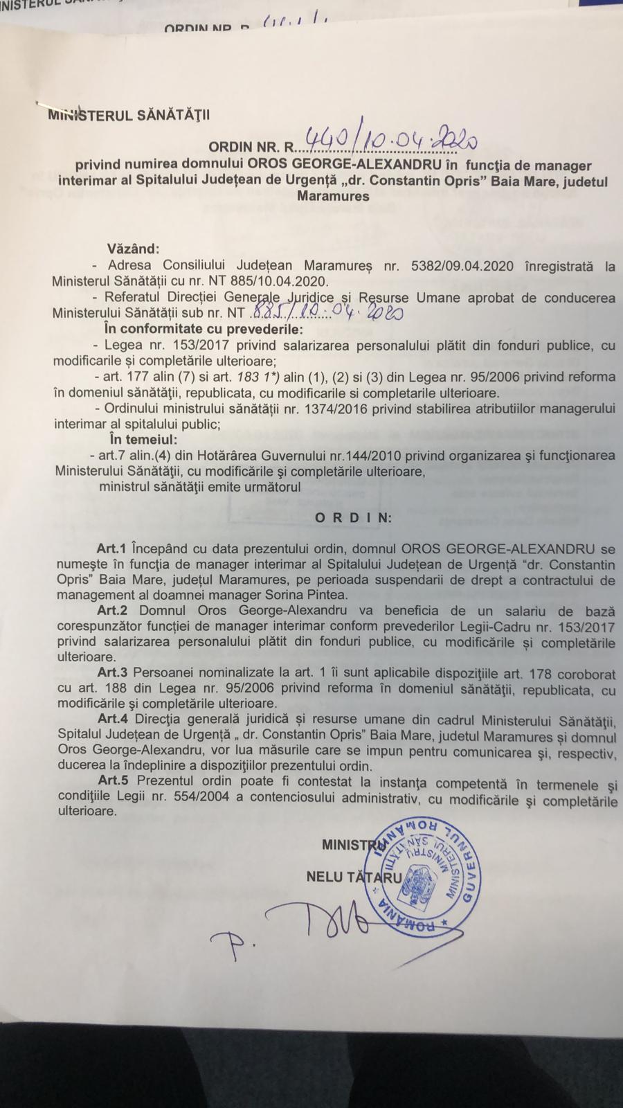 Vă reamintim faptul că Pintea a revenit asupra deciziei de a-și da demisia din funcția de manager și a intrat pe concediu de boală. Având în vedere situația la nivel național, ministrul Sănătății a considerat că spitalul are nevoie de o conducere aptă pentru a putea trece peste această perioadă în care se încearcă minimalizarea infectării cu COVID-19 atât în rândul cadrelor medicale, cât și în rândul populației.