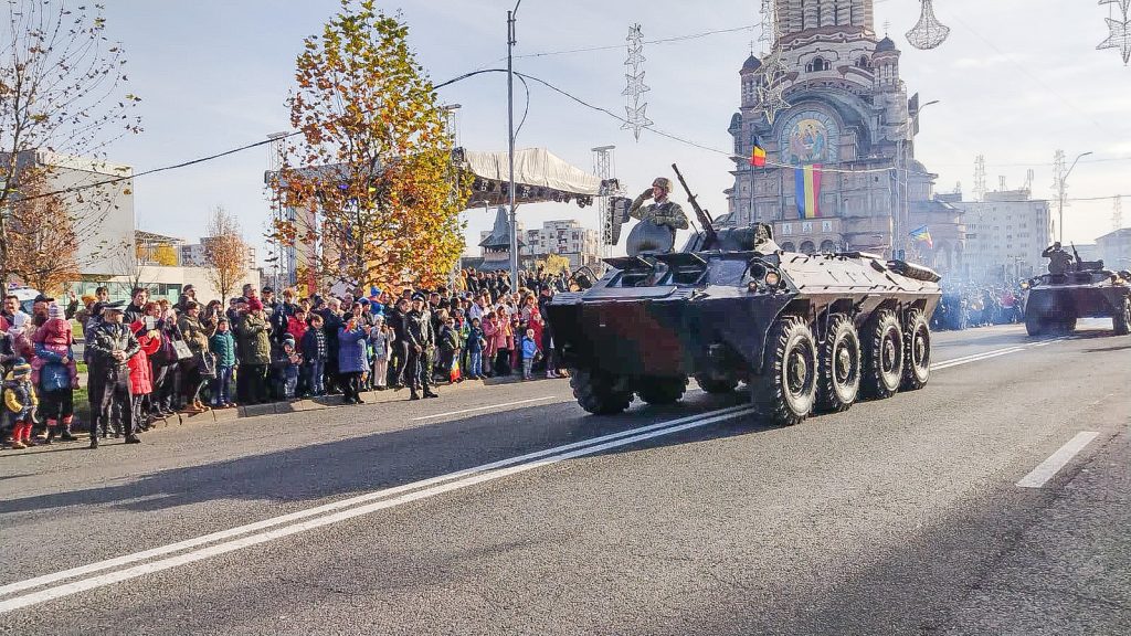 După intonarea Imnului Național al României, oficierea serviciului religios și prezentarea alocuțiunilor de către autorități va avea loc defilarea Detașamentului de Onoare și a tehnicii militare.