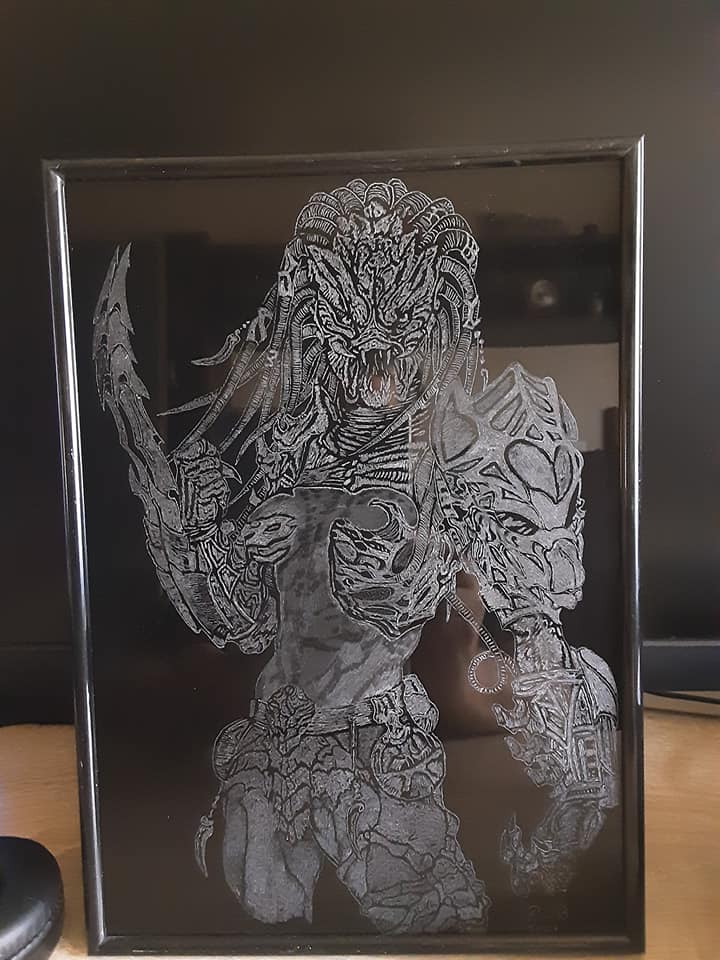 ”Gravura pe sticlă este modul meu de a mă relaxa după orele de servici. Am descoperit-o pe youtube și am început și eu să învăț tehnica, cum se face exact totul, ce pigmenți, ce unelte. Prima dată am văzut pe cineva că lucrează cu un micromotor pe care deja eu îl cumpărasem după ce terminasem Tehnica Dentară, dar nu am profesat. Îl foloseam pentru tăiat diverse metale, șlefuit, lustruit anumite lucruri. Am văzut un filmuleț pe youtube și am zis că să încerc și eu. Este greu, trebuie finețe, răbdare multă. Se poate lucra și câte 3-4 zile pe o lucrare„, spune Bogdan Prie.