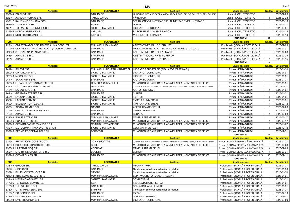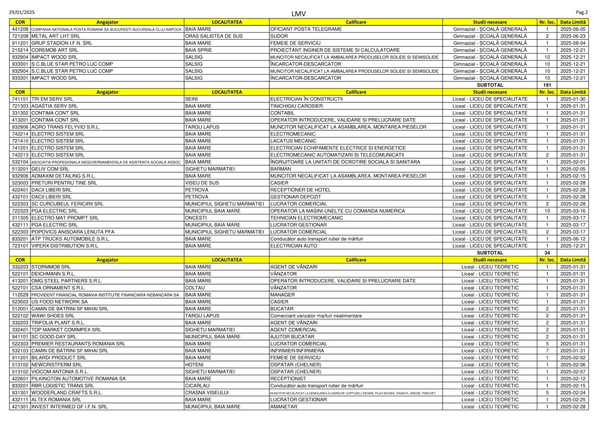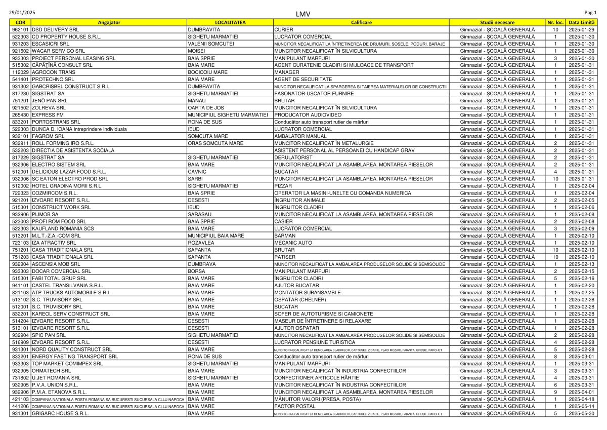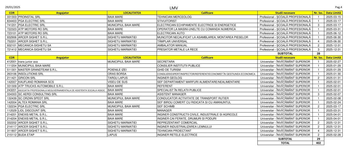 Pe listele AJOFM Maramureș se regăsesc în aceste zile 402 locuri de muncă vacante. Se caută de la bucătari, electricieni și barmani până la manageri, geologi și ghizi în turism. Listele cu posturile disponibile le găsiți mai jos.