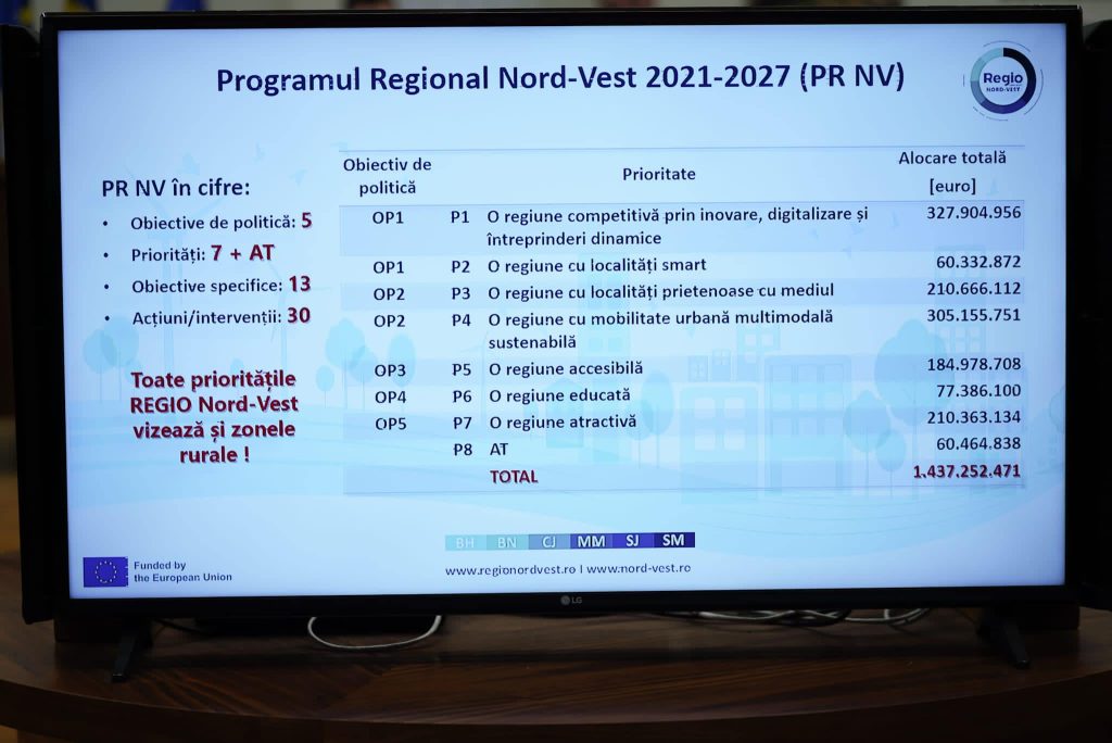 ”Astăzi, am avut o întâlnire de lucru cu reprezentanți ADR Nord-Vest: Ana Maria Gorog-Târnăvean, Șef Departamnet Sprijin Dezvoltare Urbană, Petru Șandru-Alboi, Șef PR Nord-Vest 2021-2027, Ovidiu Iulian Mărginean, Expert cu rol de comunicare program și helpdesk, Dorin Păcurar, Coordonator programe cu rol de ofițer de monitorizare, și cu primari din județul Maramureș. Am discutat despre oportunitățile de finanțare, iar echipa ADR Nord-Vest a prezentat apelurile de proiecte în care unitățile administrativ-teritoriale sunt beneficiari eligibili.