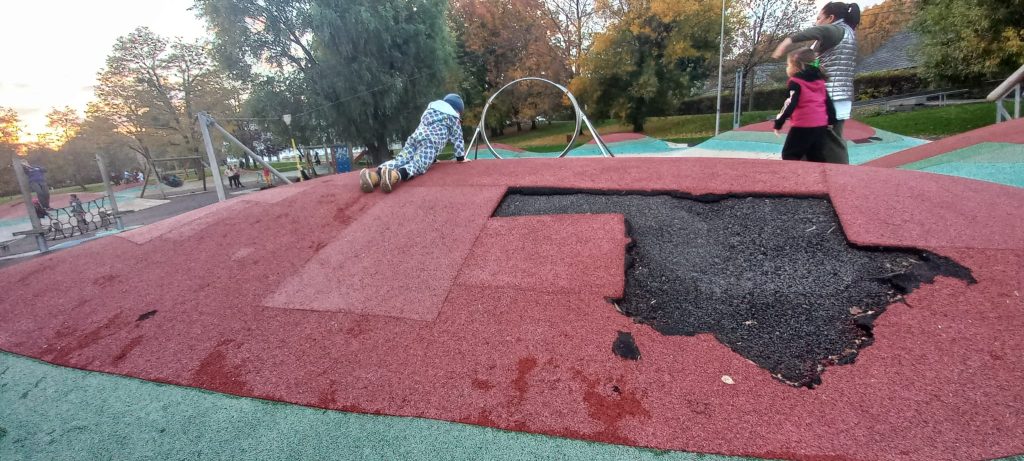 Locurile de joacă din Baia Mare au nevoie de retușuri. Cel puțin. Părinții copiilor care se joacă în aceste spații amenajate pentru cei mici se plang că nu există condiții sigure pentru cei mici să se joace. Și vin cu un exemplu: locul de joacă de pe Campia Tineretului. Sunt spații decopertate de luni de zile, nicio mișcare pentru a remedia problema. Ba mai mult, acea trambulină care exista acolo și care era deliciul copiilor, acum nu mai există. Există doar ceva pus acolo, cat să nu cadă cineva și să aibă primăria de plătit daune, în caz de accidentare.
