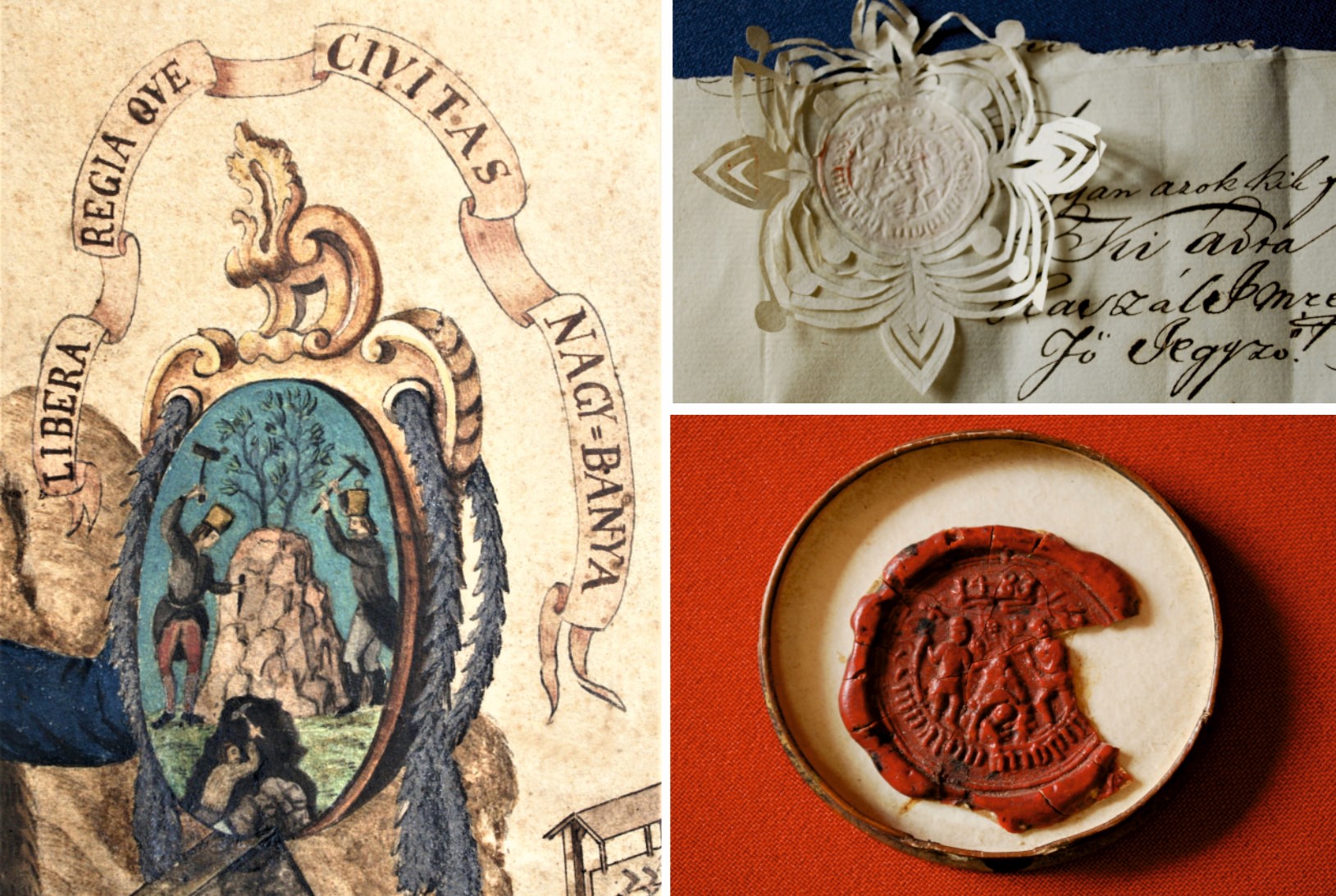 Foto: Scena alegorică (detaliu). Sigiliu, timbrat și în ceară, al orașului Baia Mare, 1483 (Muzeul Județean de Istorie și Arheologie Maramureș).