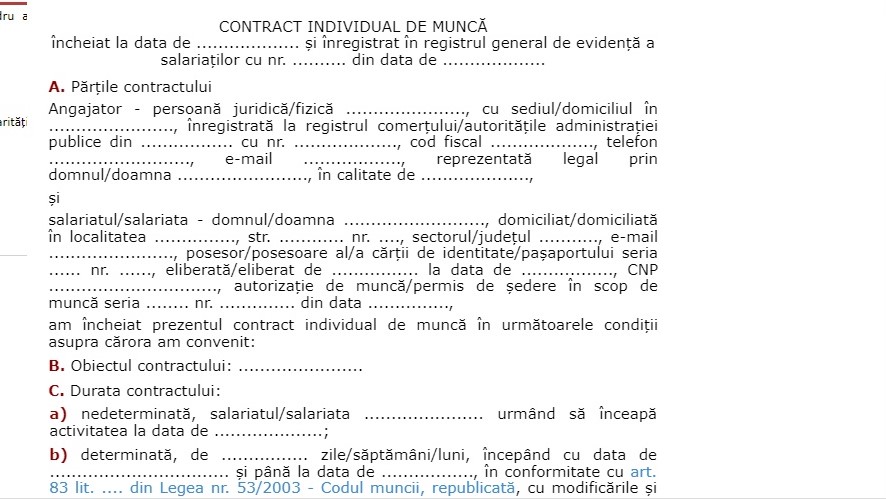 Angajatorii din județul Maramureș sunt informați de către Inspectoratul Teritorial de Muncă județean că în urma modificărilor aduse conținutului contractului individual de muncă prin Legea nr. 283/17 octombrie 2022 , Ministerul Muncii și Solidarității Sociale prin Ordinul nr. 2171/25.11.2022 a aprobat noul model cadru al contractului individual de muncă.