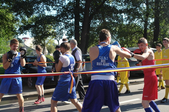 Tinerii boxeri nu s-au oprit din antrenament, pe toata durata paradei.