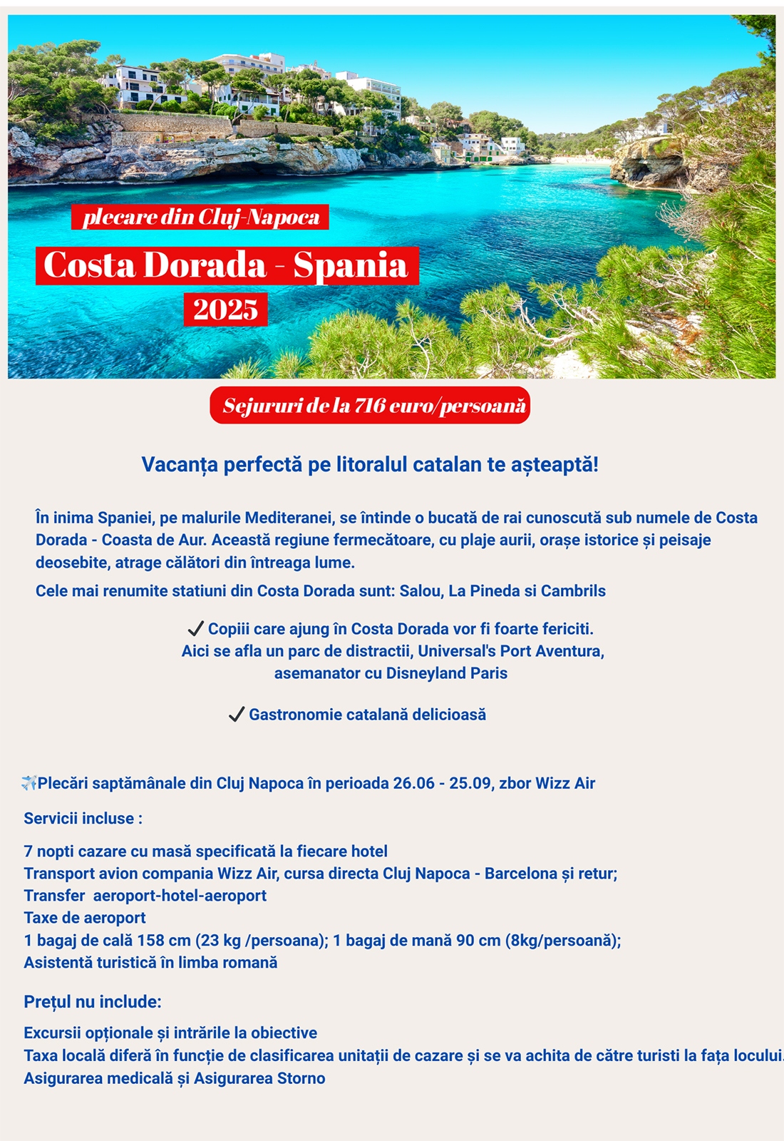 Sejur Spania: Costa Dorada, de la 750 euro/persoană. Zbor cu avionul
