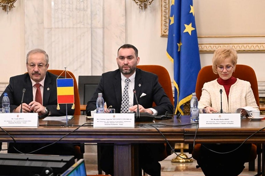 La sediul Parlamentului României a avut loc luni, 27 februarie a.c., un eveniment important la care au participat membrii ai comisiilor pentru politică externă și pentru afaceri europene din cele două camere, precum și membrii Comisiei juridice de numiri, disciplină, imunități și validări a Senatului. Cu acest prilej a avut loc întrevederea cu membrii Comisiei pentru integrare europeană din cadrul Parlamentului Georgiei, delegație condusă de președintele comisiei, doamna Maka Botchorishvili, ședința fiind condusă de senatorul Cristian Niculescu- Ţâgârlaş, președintele Comisiei juridice, de numiri, disciplină, imunităţi şi validări a Senatului României.