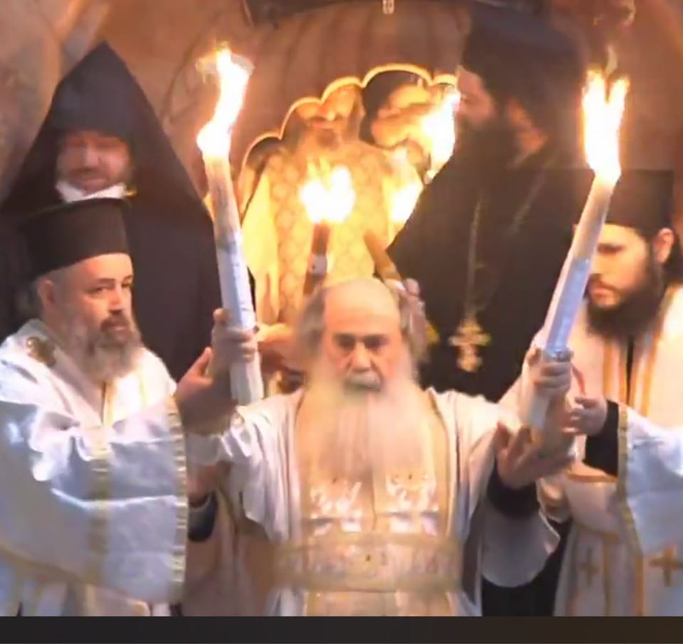 Sfânta Lumină a coborât și în acest an la Mormântul Domnului Iisus Hristos, sâmbătă, 18 aprilie, în jurul orei 13.50.