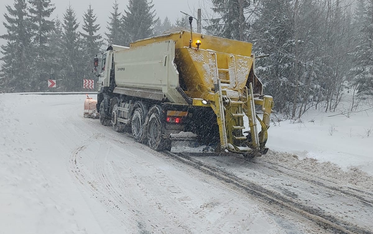 - DJ 184 + 184A + 182B: drum parțial cu zăpadă frământată, se intervine cu 3 autobasculante cu sărărițe.