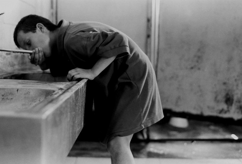 Alta, e cu un copil legat de pat, pentru că se automutila. Se juca de unul singur (cum altfel) cu o bucată de ață din cearceaful cu care-l legau de pat. Ore in sir, zile in sir, luni in sir, ani in sir.