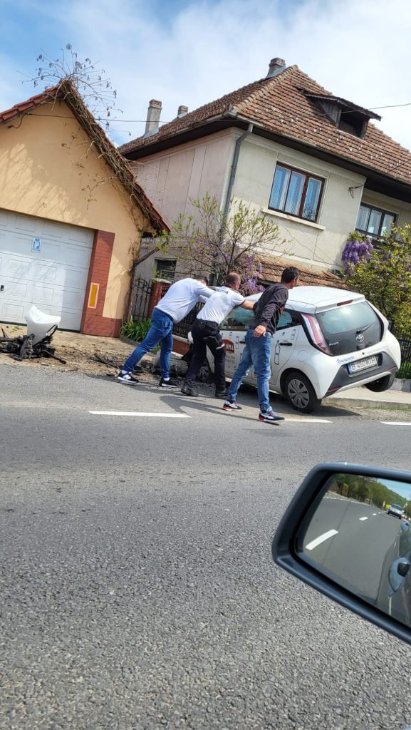 „Astăzi, 03 mai, la ora 11.10, polițiștii Serviciului Rutier Maramureș au fost sesizați prin S.N.U.A.U 112 despre faptul că pe D.N. 1C, în orașul Tăuții Măgherăuș s-a produs un accident rutier. Deplasați la fața locului, polițiștii au constatat faptul că un tânăr de 19 ani din Ulmoasa a condus un autoturism, având direcția de deplasare înspre orașul Seini, și a intrat în coliziune cu podețul de acces al unui imobil. În urma impactului a rezultat vătămarea corporală a conducătorului auto, care a fost transportat la Spitalul Județean din Baia Mare în vederea acordării de îngrijiri medicale.