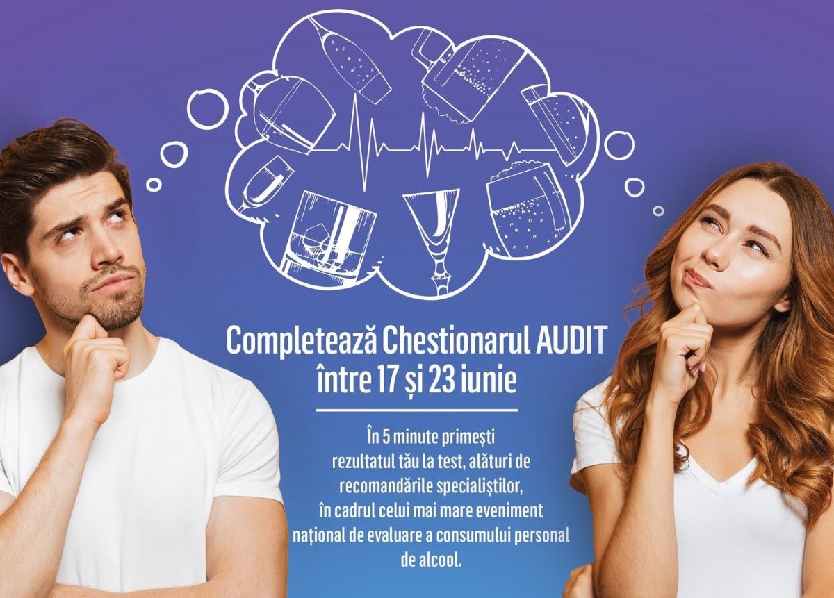 ”Cu ajutorul acestuia, participanții (…) vor putea răspunde la 10 întrebări scurte, iar în doar 5 minute să își evalueze consumul de alcool și să evite astfel problemele de sănătate viitoare, cauzate de un consum dăunător. În ceea ce privește modalitatea de completare a chestionarelor AUDIT, aceasta se va face în mod confidențial și anonim, nu se vor colecta date care pot identifica persoana, ci doar în scop statistic (gen, vârstă, mediul de rezidență urban/rural, nivel de studii, stare civilă)”, relevă sursa citată. Testul îl găsiți aici.