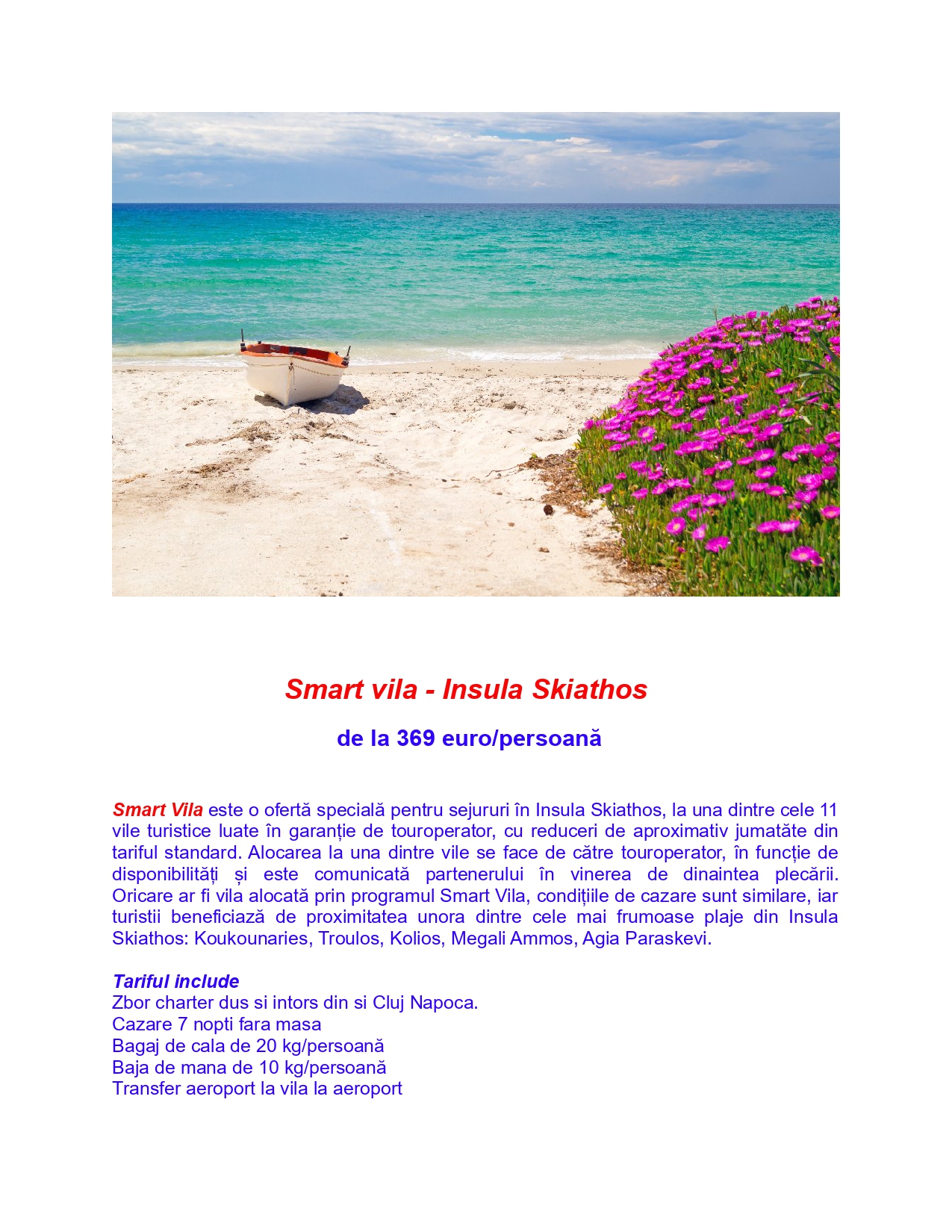 Turism: Ofertă Grecia, insula Skiathos. De la 370 euro/persoană. Zbor din Cluj Napoca