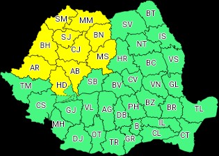 ”În intervalul menționat, local în vestul, nord-vestul și centrul țării vor fi perioade cu instabilitate atmosferică accentuată ce se va manifesta prin frecvente descărcări electrice, intensificări ale vântului (rafale în general de 55…70 km/h și izolat peste 80 km/h), vijelii, averse ce vor avea și caracter torențial (în intervale foarte scurte de timp cantitățile de apă vor fi de 20…25 l/mp și izolat peste 30…40 l/mp) și grindină.