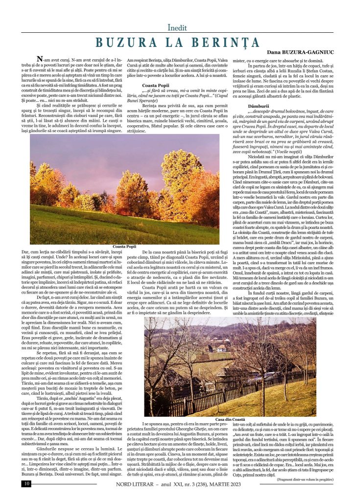 Dana Buzura-Gagniuc propune o pagină de proză din volumul în pregătire, ”Buzura la Berința”, care va aduce în atenția publicului elemente inedite din viața scriitorului Augustin Buzura, prin valorificarea corespondenței sale cu părinții și prin recuperarea unor povești mai puțin cunoscute publicului.