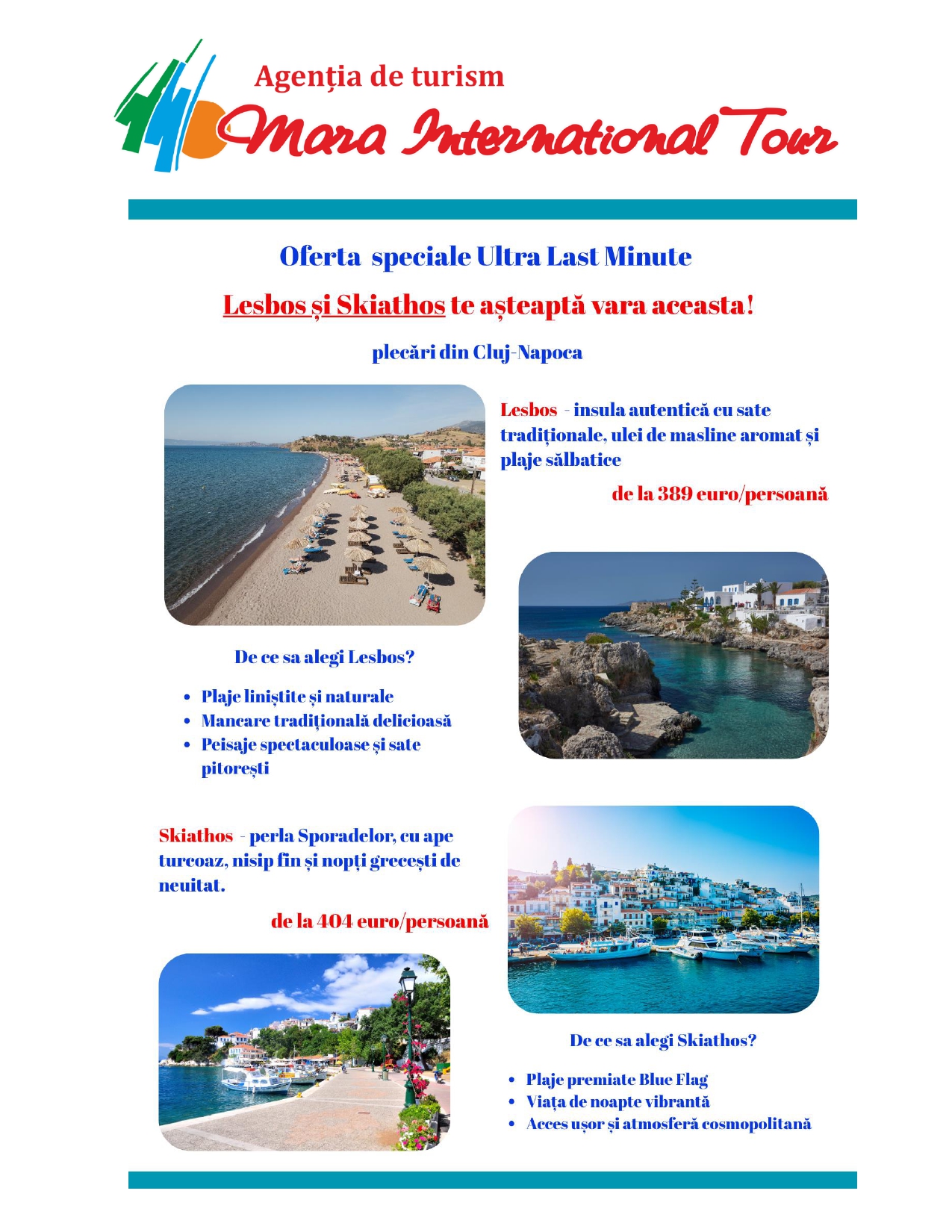 VACANȚĂ 2025: Ultra Last Minute – Lesbos și Skiathos. De la 389 euro/persoană. Plecări din Cluj, prin Mara International Tour