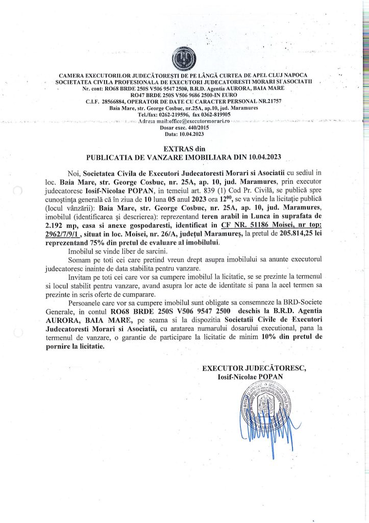 Vânzare casă și teren arabil în Moisei – Extras publicatie imobiliara, din data de 10. 04. 2023