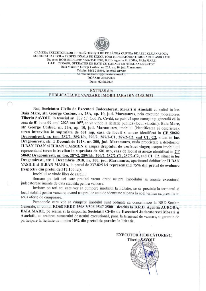 Vânzare casă și teren în Dragomirești – Extras publicație imobiliară, din data de 02. 08. 2023