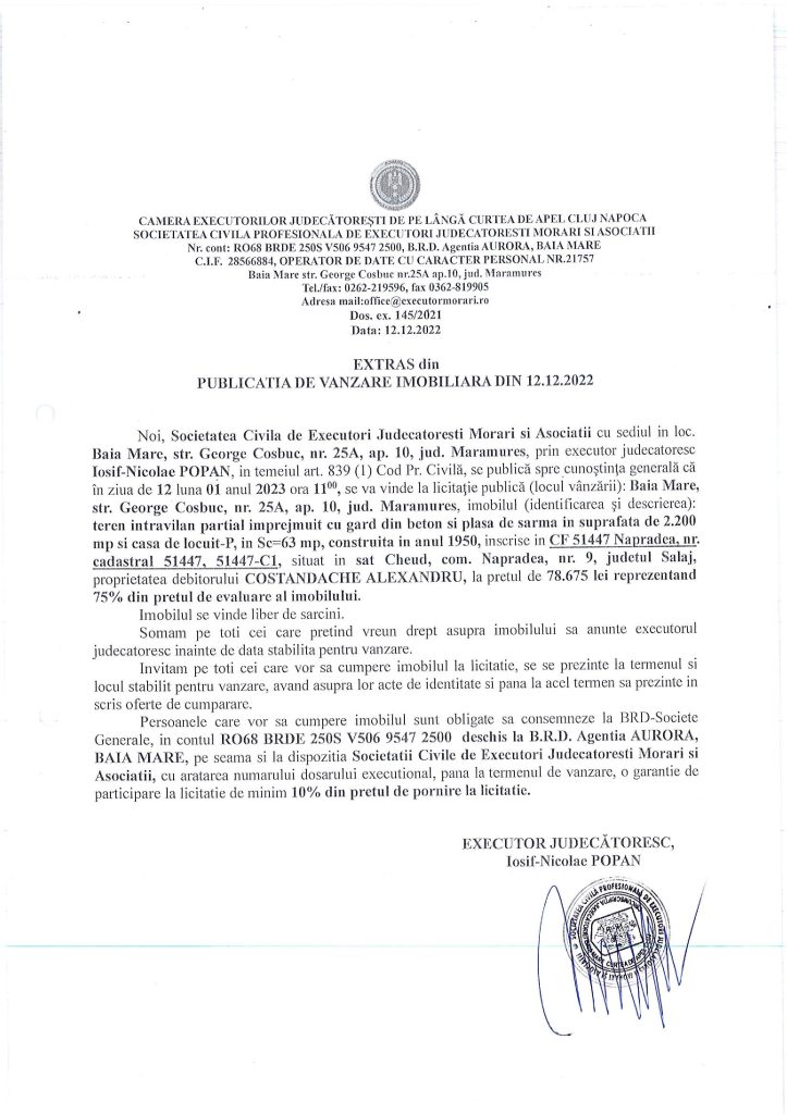 Vânzare casă și teren intravilan în Cheud, jud. Sălaj – Extras publicație imobiliară, din data de 12. 12. 2022